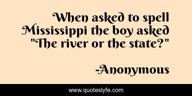This page presents the quote "When asked to spell Mississippi the boy asked "The river or the state?"". Author of this quote is Anonymous. .