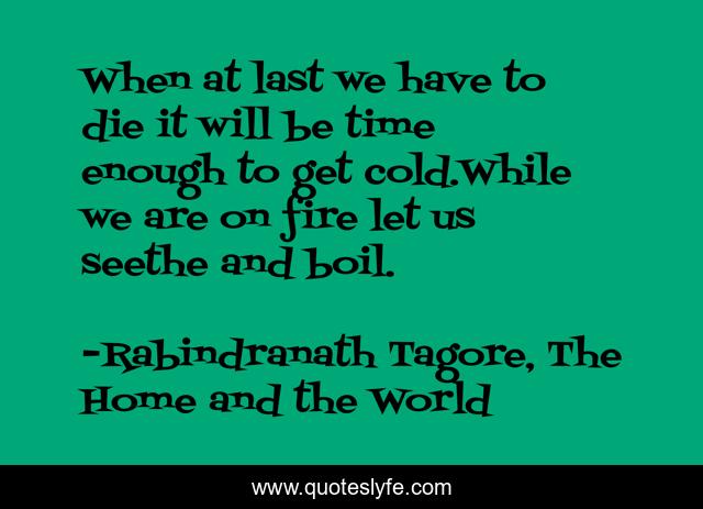This page presents the quote "When at last we have to die it will be time enough to get cold.While we are on fire let us seethe and boil.". Author of this quote is Rabindranath Tagore, The Home and the World. This quote is about death, fire, alive, revolution, human, cold,.