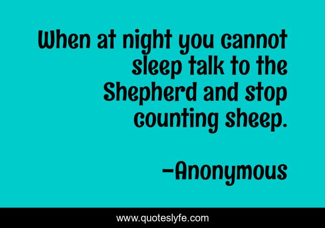 This page presents the quote "When at night you cannot sleep talk to the Shepherd and stop counting sheep.". Author of this quote is Anonymous. This quote is about peace, mind,.