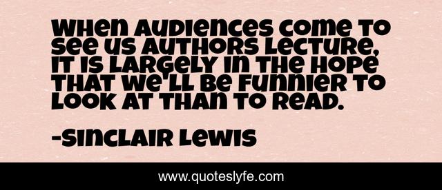 This page presents the quote "When audiences come to see us authors lecture, it is largely in the hope that we'll be funnier to look at than to read.". Author of this quote is Sinclair Lewis. This quote is about see, look, us,.