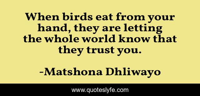 "Matshona Dhliwayo Quotes." Quoteslyfe.com, 2025. Mon. 08 Dec. 2025. <https://www.quoteslyfe.com/quote/When-birds-eat-from-your-hand-they-98024>.