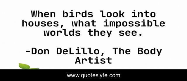 "Don DeLillo, The Body Artist Quotes." Quoteslyfe.com, 2025. Mon. 08 Dec. 2025. <https://www.quoteslyfe.com/quote/When-birds-look-into-houses-what-impossible-243666>.