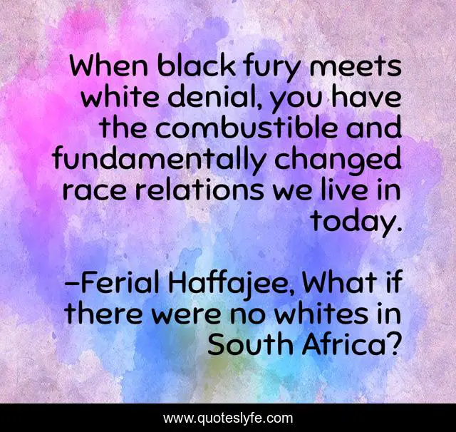 "Ferial Haffajee, What if there were no whites in South Africa? Quotes." Quoteslyfe.com, 2025. Sat. 06 Dec. 2025. <https://www.quoteslyfe.com/quote/When-black-fury-meets-white-denial-you-200399>.
