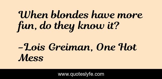 "Lois Greiman, One Hot Mess Quotes." Quoteslyfe.com, 2025. Fri. 05 Dec. 2025. <https://www.quoteslyfe.com/quote/When-blondes-have-more-fun-do-they-70828>.