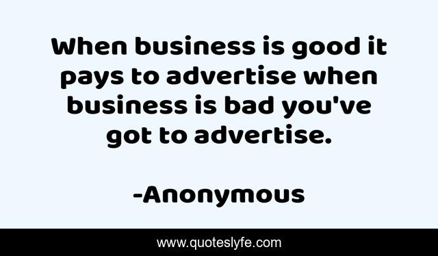 This page presents the quote "When business is good it pays to advertise when business is bad you've got to advertise.". Author of this quote is Anonymous. .