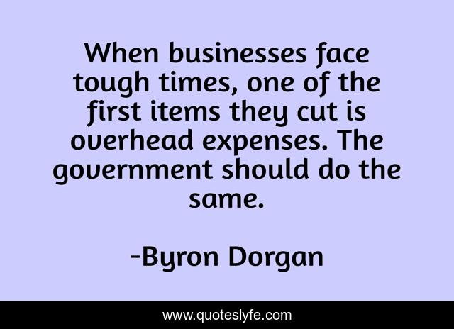 This page presents the quote "When businesses face tough times, one of the first items they cut is overhead expenses. The government should do the same.". Author of this quote is Byron Dorgan. This quote is about tough times, face, first,.