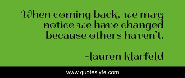 "lauren klarfeld Quotes." Quoteslyfe.com, 2025. Mon. 08 Dec. 2025. <https://www.quoteslyfe.com/quote/When-coming-back-we-may-notice-we-137119>.