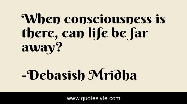 This page presents the quote "When consciousness is there, can life be far away?". Author of this quote is Debasish Mridha. This quote is about life, consciousness, philosophy, debasish-mridha, can-life-be-far-away, quotes, inspirational, enthusiasm, debasish-mridha-m-d,.