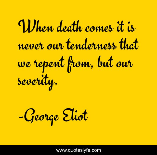 This page presents the quote "When death comes it is never our tenderness that we repent from, but our severity.". Author of this quote is George Eliot. This quote is about tenderness, severity,.