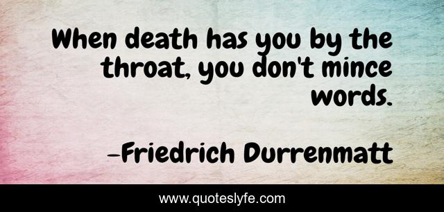 This page presents the quote "When death has you by the throat, you don't mince words.". Author of this quote is Friedrich Durrenmatt. This quote is about throat, words,.