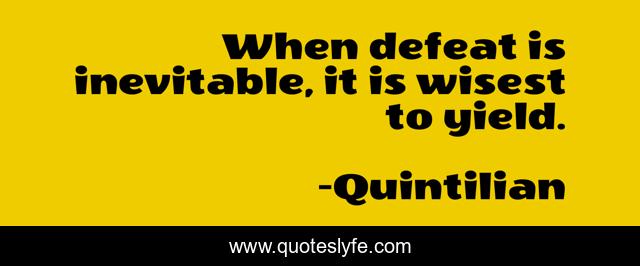 This page presents the quote "When defeat is inevitable, it is wisest to yield.". Author of this quote is Quintilian. This quote is about wisest, inevitable, defeat,.