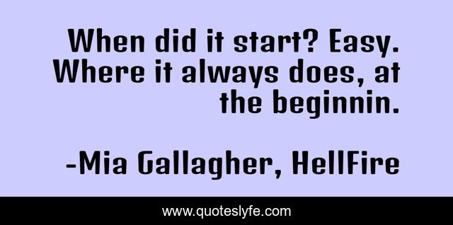 "Mia Gallagher, HellFire Quotes." Quoteslyfe.com, 2025. Sat. 06 Dec. 2025. <https://www.quoteslyfe.com/quote/When-did-it-start-Easy-Where-it-180622>.
