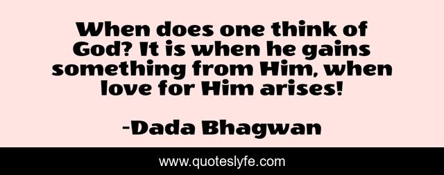 This page presents the quote "When does one think of God? It is when he gains something from Him, when love for Him arises!". Author of this quote is Dada Bhagwan. This quote is about god, spiritual,.
