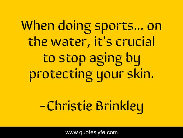 This page presents the quote "When doing sports... on the water, it's crucial to stop aging by protecting your skin.". Author of this quote is Christie Brinkley. This quote is about water, aging,.
