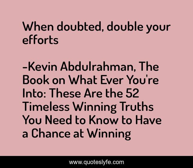 "Kevin Abdulrahman, The Book on What Ever You're Into: These Are the 52 Timeless Winning Truths You Need to Know to Have a Chance at Winning Quotes." Quoteslyfe.com, 2025. Fri. 05 Dec. 2025. <https://www.quoteslyfe.com/quote/When-doubted-double-your-efforts-15554>.