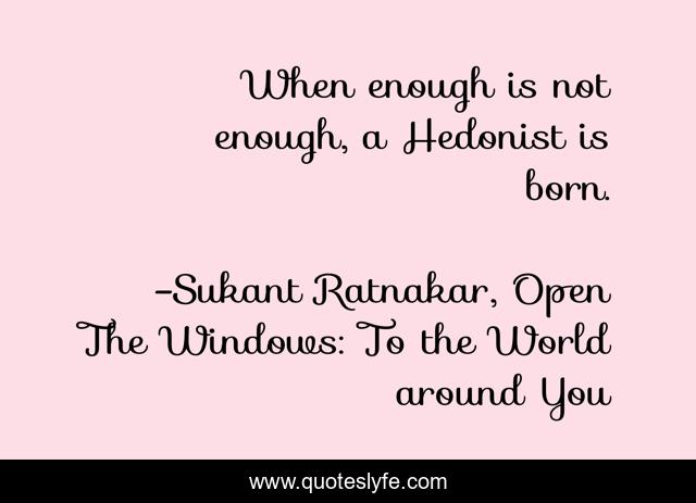 "Sukant Ratnakar, Open The Windows: To the World around You Quotes." Quoteslyfe.com, 2025. Fri. 05 Dec. 2025. <https://www.quoteslyfe.com/quote/When-enough-is-not-enough-a-Hedonist-227221>.