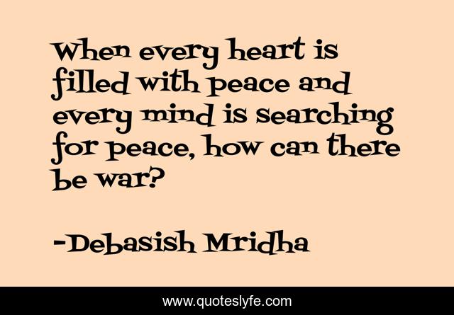 This page presents the quote "When every heart is filled with peace and every mind is searching for peace, how can there be war?". Author of this quote is Debasish Mridha. This quote is about heart, peace, inspirational, philosophy, debasish-mridha, debasish-mridha-m-d, every-mind, quotes, war-and-peace,.