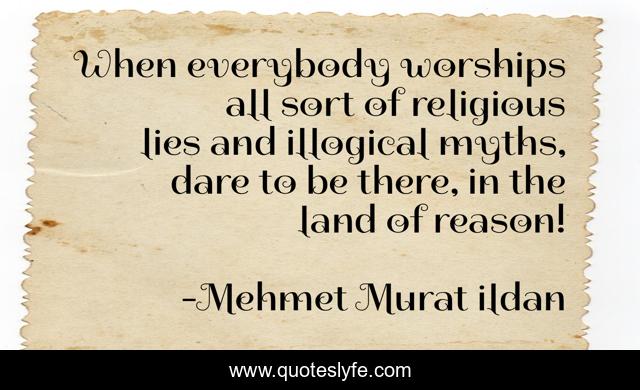 This page presents the quote "When everybody worships all sort of religious lies and illogical myths, dare to be there, in the land of reason!". Author of this quote is Mehmet Murat ildan. .