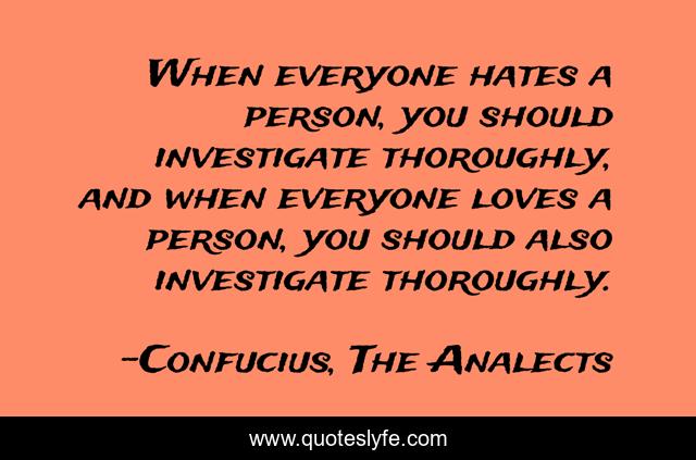 This page presents the quote "When everyone hates a person, you should investigate thoroughly, and when everyone loves a person, you should also investigate thoroughly.". Author of this quote is Confucius, The Analects. This quote is about hatred, love, behavior, affection,.