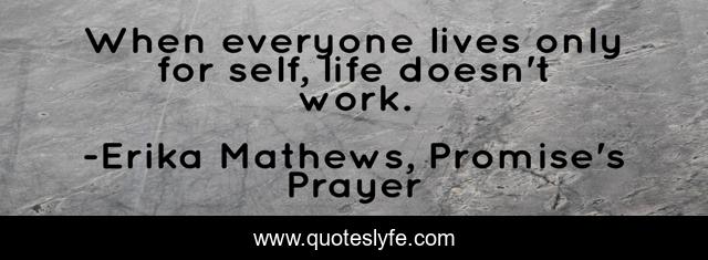 This page presents the quote "When everyone lives only for self, life doesn't work.". Author of this quote is Erika Mathews, Promise's Prayer. This quote is about life, work, living-for-self,.