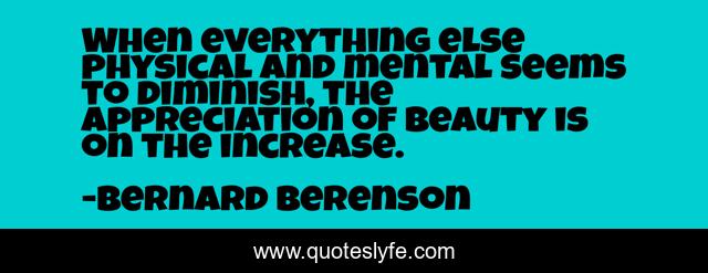 This page presents the quote "When everything else physical and mental seems to diminish, the appreciation of beauty is on the increase.". Author of this quote is Bernard Berenson. This quote is about appreciation, seems, mental,.