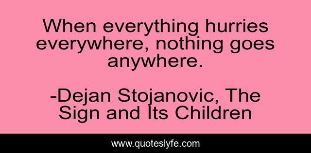 "Dejan Stojanovic, The Sign and Its Children Quotes." Quoteslyfe.com, 2025. Sat. 06 Dec. 2025. <https://www.quoteslyfe.com/quote/When-everything-hurries-everywhere-nothing-goes-anywhere-112312>.