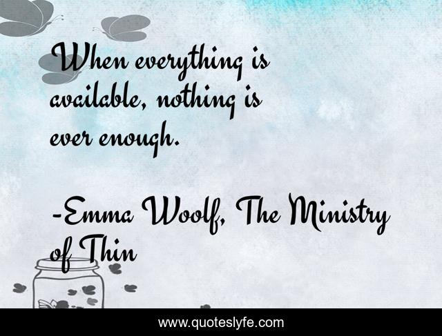 "Emma Woolf, The Ministry of Thin Quotes." Quoteslyfe.com, 2025. Sat. 06 Dec. 2025. <https://www.quoteslyfe.com/quote/When-everything-is-available-nothing-is-ever-184745>.