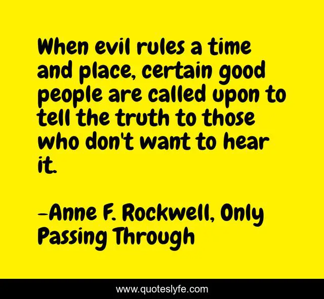 "Anne F. Rockwell, Only Passing Through Quotes." Quoteslyfe.com, 2025. Sat. 06 Dec. 2025. <https://www.quoteslyfe.com/quote/When-evil-rules-a-time-and-place-55193>.