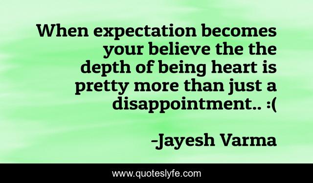 This page presents the quote "When expectation becomes your believe the the depth of being heart is pretty more than just a disappointment.. :(". Author of this quote is Jayesh Varma. This quote is about relationships, believe, disappointment, expectations,.