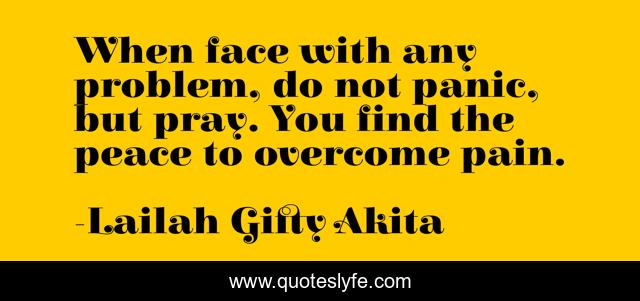 This page presents the quote "When face with any problem, do not panic, but pray. You find the peace to overcome pain.". Author of this quote is Lailah Gifty Akita. This quote is about pain, pray, peace, problems, inspirational, enthusiasm,.