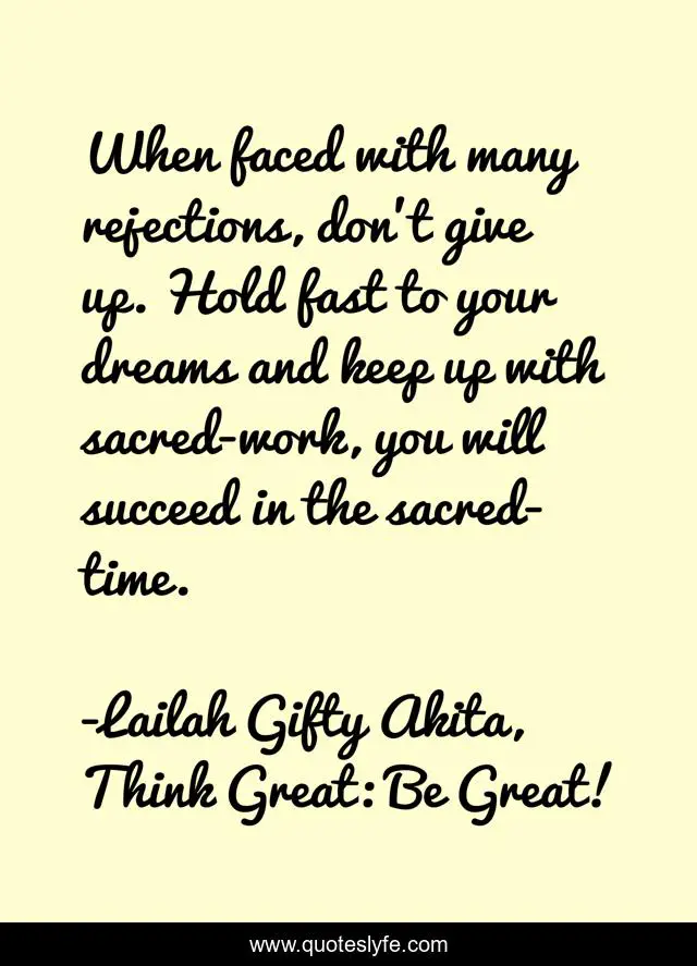 "Lailah Gifty Akita, Think Great: Be Great! Quotes." Quoteslyfe.com, 2025. Fri. 05 Dec. 2025. <https://www.quoteslyfe.com/quote/When-faced-with-many-rejections-don-t-34602>.