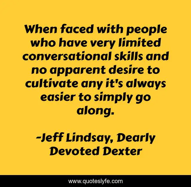 This page presents the quote "When faced with people who have very limited conversational skills and no apparent desire to cultivate any it's always easier to simply go along.". Author of this quote is Jeff Lindsay, Dearly Devoted Dexter. This quote is about conversational, desire, easier,.
