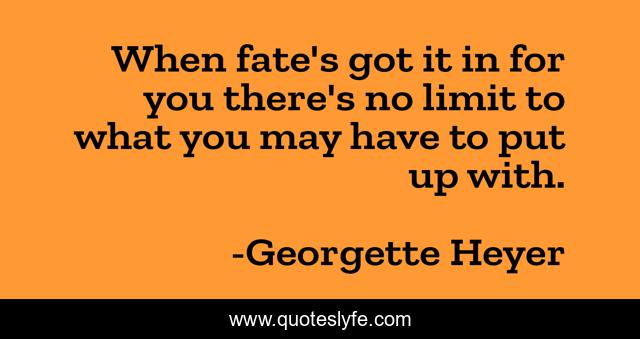This page presents the quote "When fate's got it in for you there's no limit to what you may have to put up with.". Author of this quote is Georgette Heyer. This quote is about life, death,.