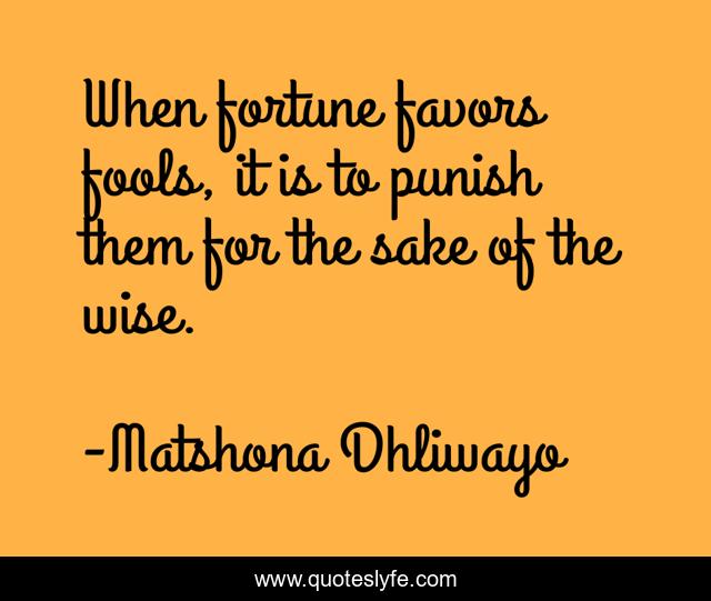 "Matshona Dhliwayo Quotes." Quoteslyfe.com, 2025. Sun. 07 Dec. 2025. <https://www.quoteslyfe.com/quote/When-fortune-favors-fools-it-is-to-57530>.