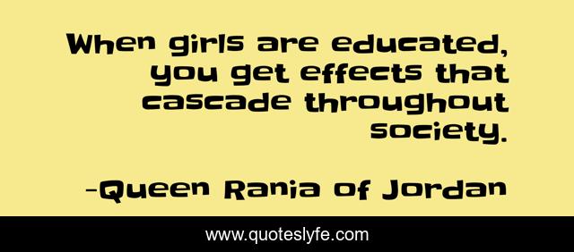 This page presents the quote "When girls are educated, you get effects that cascade throughout society.". Author of this quote is Queen Rania of Jordan. This quote is about educated, effects,.