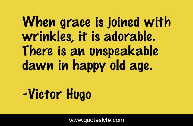 This page presents the quote "When grace is joined with wrinkles, it is adorable. There is an unspeakable dawn in happy old age.". Author of this quote is Victor Hugo. This quote is about happy, old age, grace,.