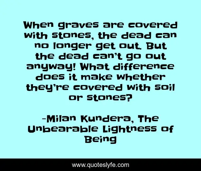 "Milan Kundera, The Unbearable Lightness of Being Quotes." Quoteslyfe.com, 2025. Fri. 05 Dec. 2025. <https://www.quoteslyfe.com/quote/When-graves-are-covered-with-stones-the-21612>.