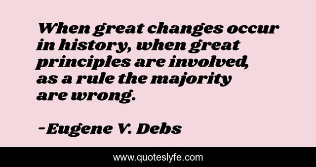This page presents the quote "When great changes occur in history, when great principles are involved, as a rule the majority are wrong.". Author of this quote is Eugene V. Debs. This quote is about great, changes, principles,.