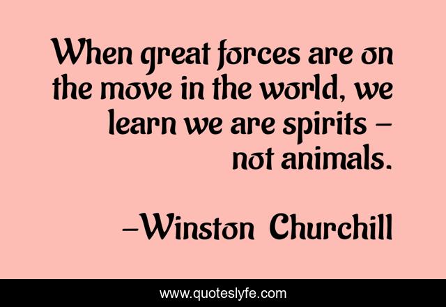 This page presents the quote "When great forces are on the move in the world, we learn we are spirits - not animals.". Author of this quote is Winston Churchill. This quote is about animals, spirits, forces,.