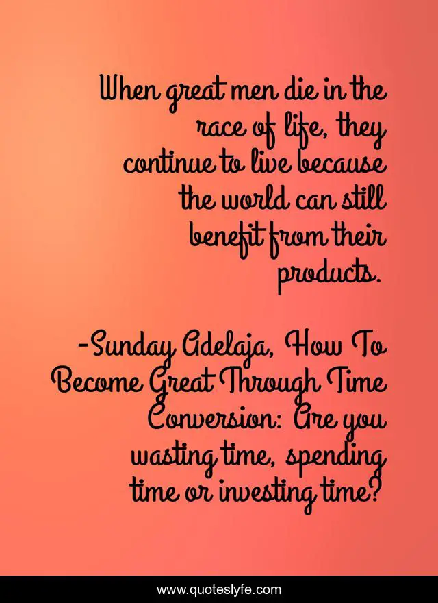 "Sunday Adelaja, How To Become Great Through Time Conversion: Are you wasting time, spending time or investing time? Quotes." Quoteslyfe.com, 2025. Mon. 08 Dec. 2025. <https://www.quoteslyfe.com/quote/When-great-men-die-in-the-race-39146>.