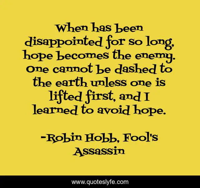"Robin Hobb, Fool's Assassin Quotes." Quoteslyfe.com, 2025. Fri. 05 Dec. 2025. <https://www.quoteslyfe.com/quote/When-has-been-disappointed-for-so-long-76139>.
