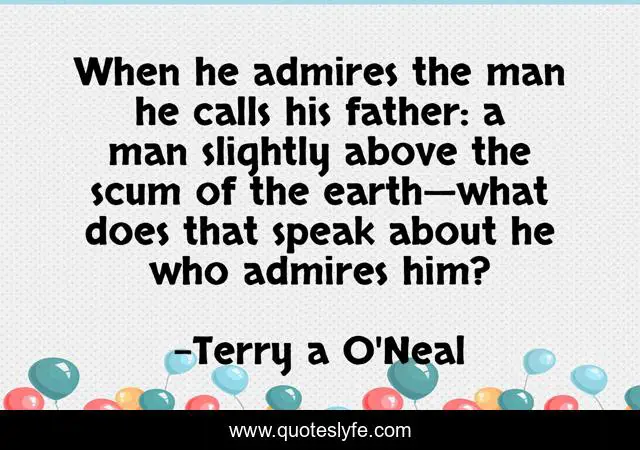 This page presents the quote "When he admires the man he calls his father: a man slightly above the scum of the earth—what does that speak about he who admires him?". Author of this quote is Terry a O'Neal. This quote is about evil, life-and-sayings,.