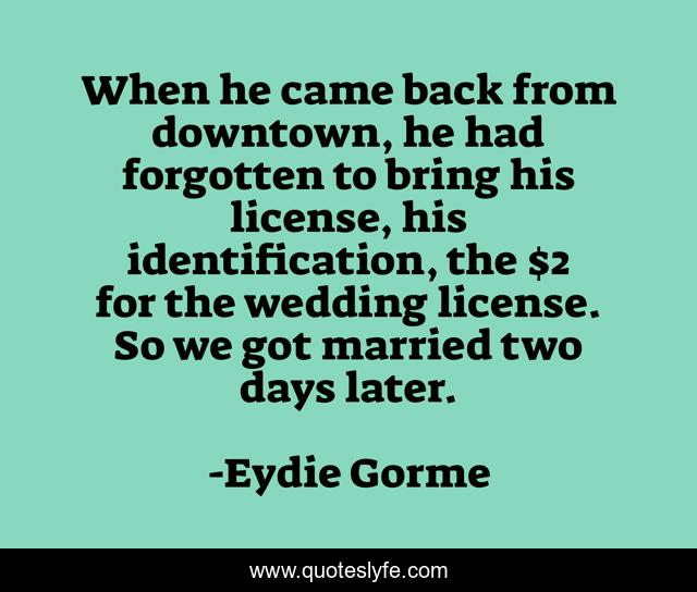 When he came back from downtown, he had forgotten to bring his license, his identification, the $2 for the wedding license. So we got married two days later.