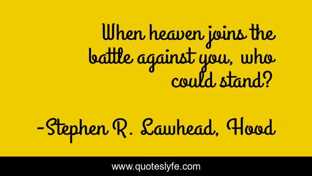 This page presents the quote "When heaven joins the battle against you, who could stand?". Author of this quote is Stephen R. Lawhead, Hood. This quote is about battle, heaven, stand,.