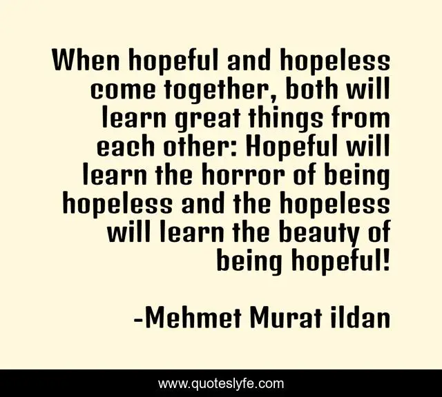 "Mehmet Murat ildan Quotes." Quoteslyfe.com, 2025. Mon. 08 Dec. 2025. <https://www.quoteslyfe.com/quote/When-hopeful-and-hopeless-come-together-both-213008>.
