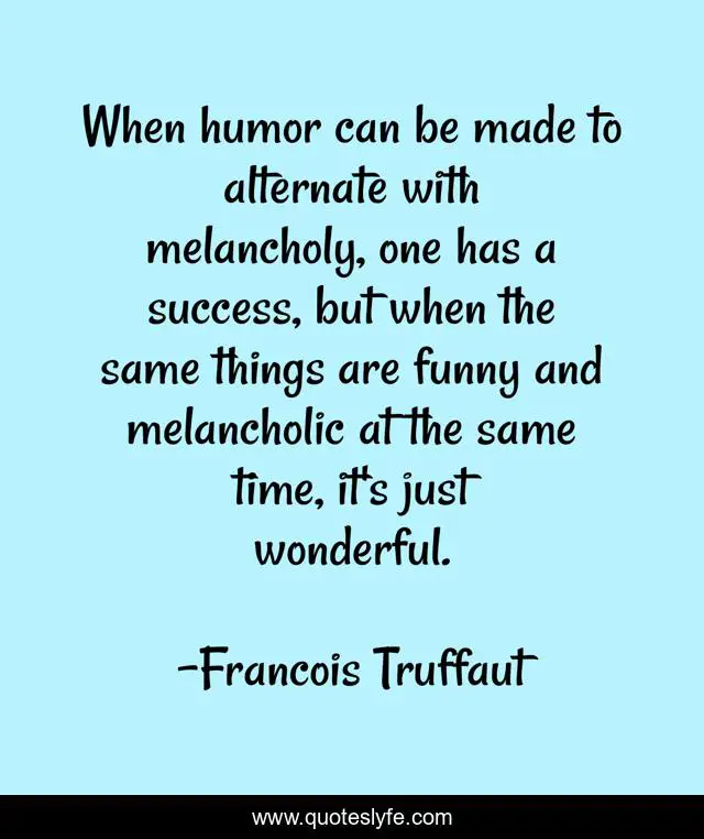 This page presents the quote "When humor can be made to alternate with melancholy, one has a success, but when the same things are funny and melancholic at the same time, it's just wonderful.". Author of this quote is Francois Truffaut. This quote is about funny, comedy, success, time,.