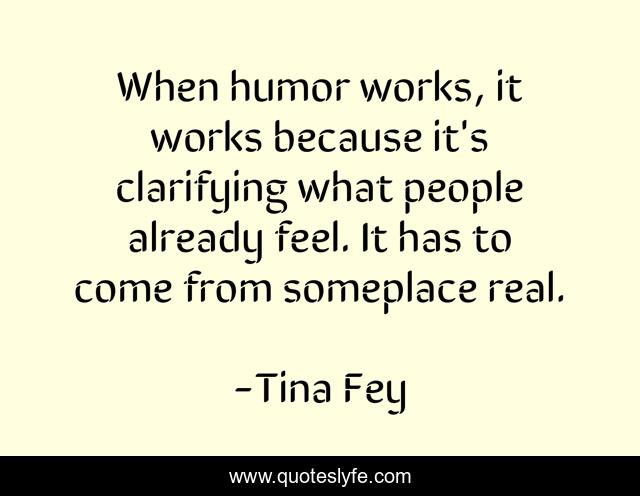 This page presents the quote "When humor works, it works because it's clarifying what people already feel. It has to come from someplace real.". Author of this quote is Tina Fey. This quote is about real, feel, people,.