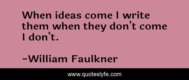 This page presents the quote "When ideas come I write them when they don't come I don't.". Author of this quote is William Faulkner. .
