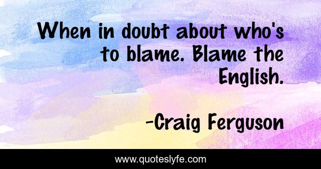 This page presents the quote "When in doubt about who's to blame. Blame the English.". Author of this quote is Craig Ferguson. This quote is about blame, doubt, english,.