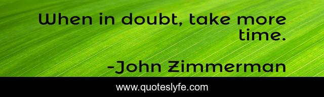 This page presents the quote "When in doubt, take more time.". Author of this quote is John Zimmerman. This quote is about when in doubt, doubt, take,.